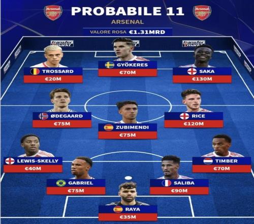 阿森納 | 預(yù)測首發(fā)11人(陣容身價(jià):13.1億歐元)