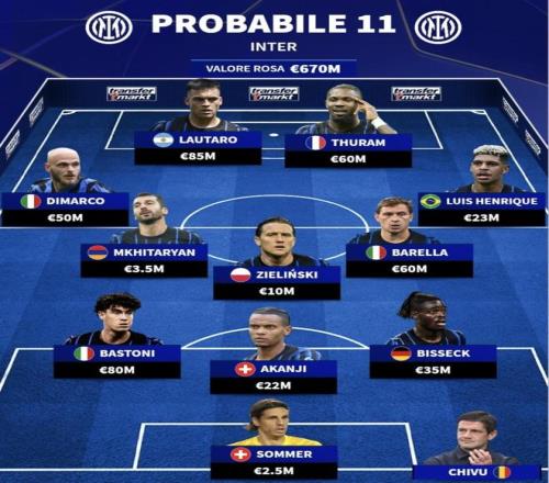 國際米蘭 | 預(yù)測首發(fā)11人(陣容身價(jià):6.7億歐元)