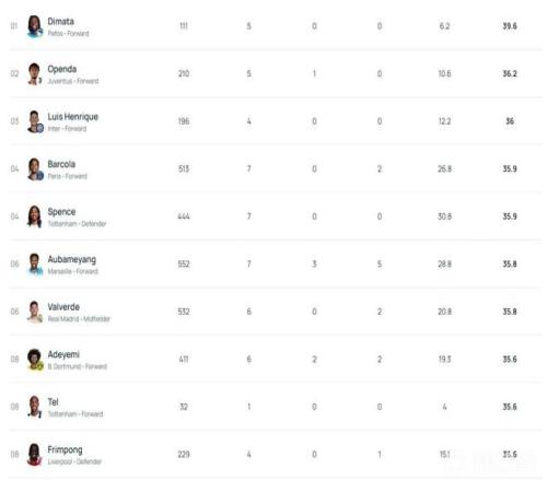 統(tǒng)計數(shù)據(jù)顯示,迪馬塔以39.6公里/小時的速度,成為本賽季歐冠聯(lián)賽中跑得最快的球員。據(jù)統(tǒng)計,中國短跑名將蘇炳添的最快速度為42.2km/h,而博爾特為44.72km/h。