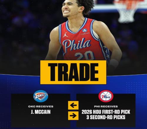 他們先從76人交易得到了賈里德·麥凱恩,為此送出了一個(gè)2026年首輪簽和三個(gè)次輪簽:2026年首輪簽(來自火箭);2027年次輪簽(雷霆、火箭、步行者和熱火中順位最高的一個(gè));2028年次輪簽(來自雄鹿);2028年次輪簽(來自雷霆)。