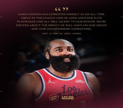 哈登加蘭交易官宣!騎士總裁盛贊助推爭冠快船官方感謝登哥付出