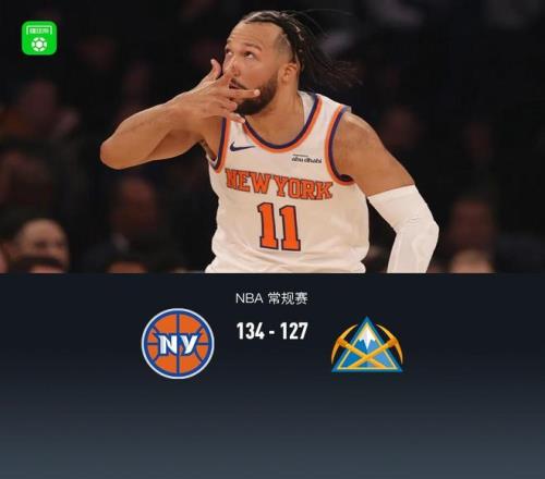 尼克斯雙加時(shí)134127掘金,布倫森42+8+9,約基奇30+14+10