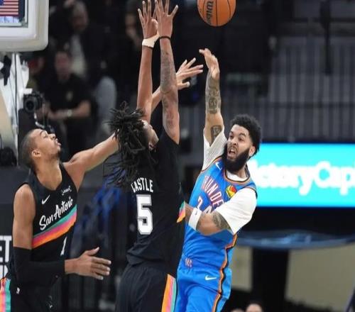 關(guān)鍵時刻??怂箤股匣@止血,此后布萊恩特繼續(xù)狂扔三分,文班亞馬和尚帕尼也在節(jié)末繼續(xù)三分轟炸,馬刺半場打完73-58領(lǐng)先雷霆。面對雷霆的小陣容,馬刺外線三分球太準了。進入下半場,杰林和肯威繼續(xù)下三分雨,雷霆三分球也很準,一路追到只差9分。文班亞馬暴扣回應(yīng),維金斯聯(lián)合杰林繼續(xù)縮小分差,馬刺面對殘陣太想拉開分差,反而無從下手。中段約翰遜騎馬射箭拋投+弧頂三分,內(nèi)突外投連拿10分,但杰林和肯威兩人又通過三分球給追回來。節(jié)末巴恩海澤和維金斯咬住分差,三節(jié)結(jié)束時,雷霆85-95馬刺。