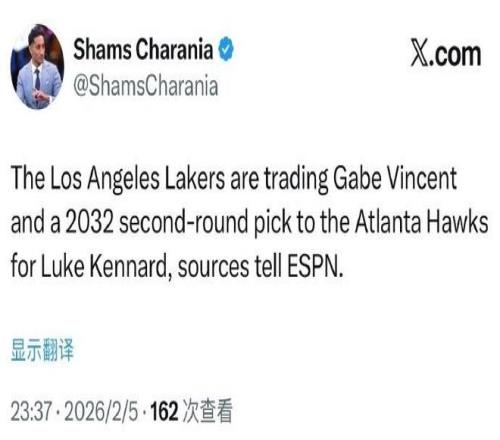根據(jù)ESPN名記Shams報道,湖人與老鷹完成2換1交易,湖人將文森特和2032年次輪簽送至老鷹,換回神射手肯納德,有望提升湖人的外線投射能力。