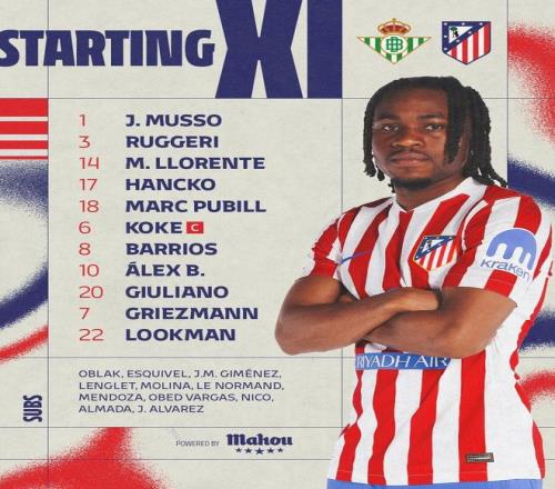 馬競(jìng)客戰(zhàn)貝蒂斯:格列茲曼、小西蒙尼首發(fā),盧克曼首秀