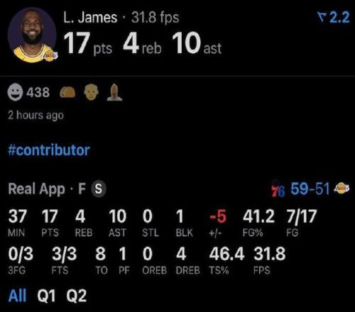 所幸,末節(jié)決戰(zhàn)階段詹姆斯爆發(fā),他單節(jié)8中5得到10分,持續(xù)沖擊內線率領湖人反撲追分,從而最終驚險逆轉戰(zhàn)勝76人取勝。