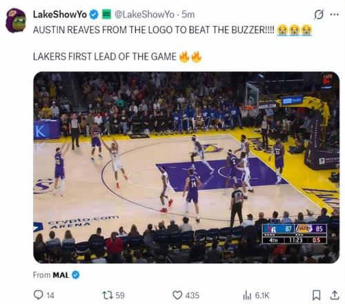 第三節(jié)剛開場,里夫斯還剩0.5秒接球完成了一個壓哨的超遠三分,這是一個不沉球的超遠三分,湖人媒體都看哭了。