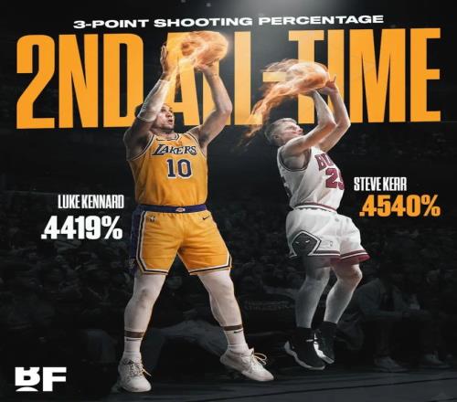 肯納德的到來(lái)將為湖人補(bǔ)上迫切需要的外線火力。他的職業(yè)生涯三分命中率高達(dá)44.2%(聯(lián)盟歷史第二,僅次于科爾的45.4%),本賽季至今更是以49.7%的三分命中率高居聯(lián)盟榜首。