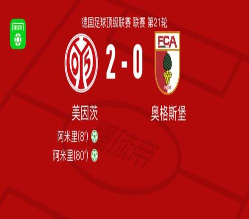 北京時間2月7日德國足球頂級聯(lián)賽 聯(lián)賽 第21輪,美因茨主場對陣奧格斯堡。美因茨阿米里梅開二度。最終比分美因茨 2-0 奧格斯堡。