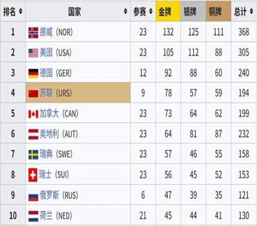 (冬奧會歷史獎牌榜,圖:Wiki)▼