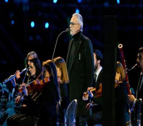 格萊美獎(jiǎng)得主、流行偶像羅拉·普西妮(Laura Pausini)在開幕式上演唱了意大利國(guó)歌。在距離米蘭5小時(shí)車程之外的科爾蒂納,一個(gè)山地合唱團(tuán)在奧運(yùn)會(huì)開幕式的第二個(gè)場(chǎng)地為普西妮的演唱伴唱。