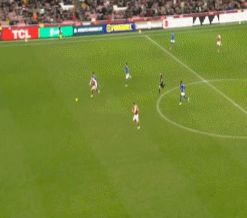 第42分鐘,特羅薩德左路連續(xù)突破后倒三角回敲,蘇維門迪禁區(qū)外迎球怒射,皮球擊中立柱內(nèi)側(cè)彈入球網(wǎng),阿森納1-0領(lǐng)先;徹底點(diǎn)燃了酋長(zhǎng)球場(chǎng)。