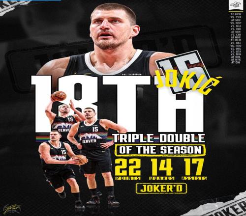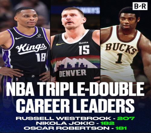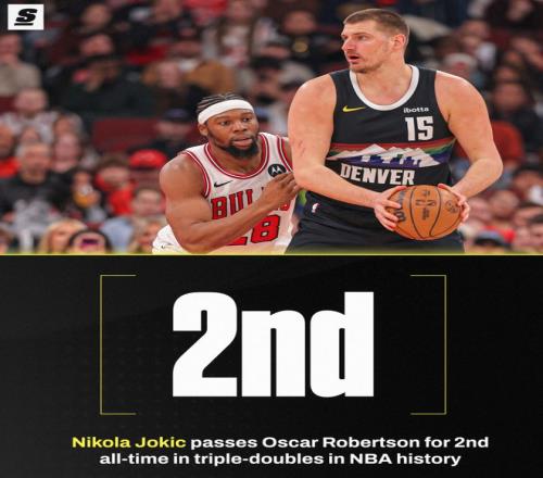 這場(chǎng)比賽也是約基奇的里程碑之夜,他完成生涯第182次三雙升至歷史第二位,在他之前只剩下威少,奧斯卡-羅伯特森181次三雙正式被超越。