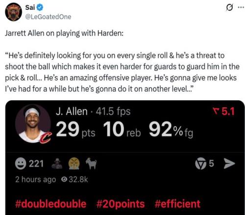 值得一提的是,哈登賽后透露自己僅與騎士隊合練了10分鐘,其余時間都只是看錄像分析。