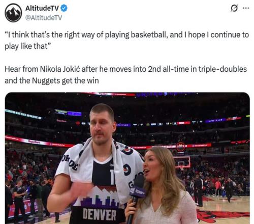 賽后談到自己的三雙數(shù)時(shí),約基奇也坦言:“我認(rèn)為這就是正確的籃球打法,希望能夠繼續(xù)這樣打下去。”