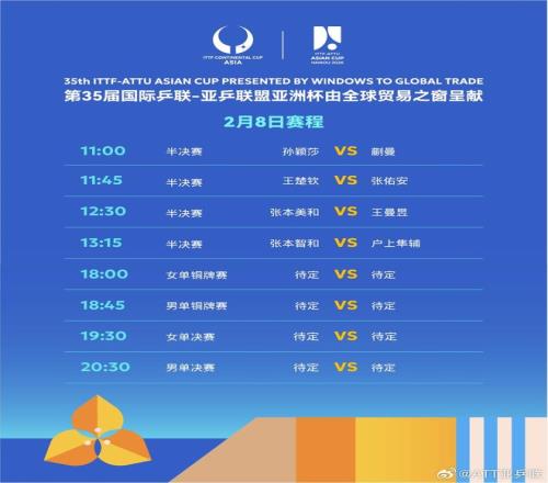 2月8日,第35屆國際乒聯(lián)-亞乒聯(lián)盟亞洲杯進(jìn)入最后一個(gè)比賽日。女單比賽中,3名中國選手挺進(jìn)半決賽。孫穎莎對陣蒯曼,王曼昱則將對陣張本美和。男單比賽中,王楚欽將在半決賽對陣中國臺北選手張佑安。