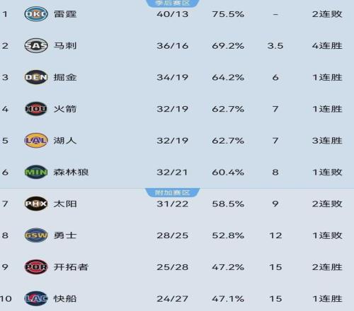 火箭當(dāng)前以32勝19負(fù)位列西部第四,戰(zhàn)績(jī)與第五的湖人打平,僅領(lǐng)先第七的太陽(yáng)2個(gè)勝場(chǎng),落后第三的掘金1個(gè)勝場(chǎng),既有希望沖擊前三甲又面臨著掉出季后賽區(qū)域的危險(xiǎn)。