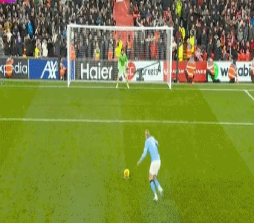 第92分鐘,阿利松禁區(qū)內(nèi)撲倒努內(nèi)斯,裁判判罰點(diǎn)球,隨后哈蘭德操刀命中,完成傳射建功好戲,曼城反超比分,2-1!